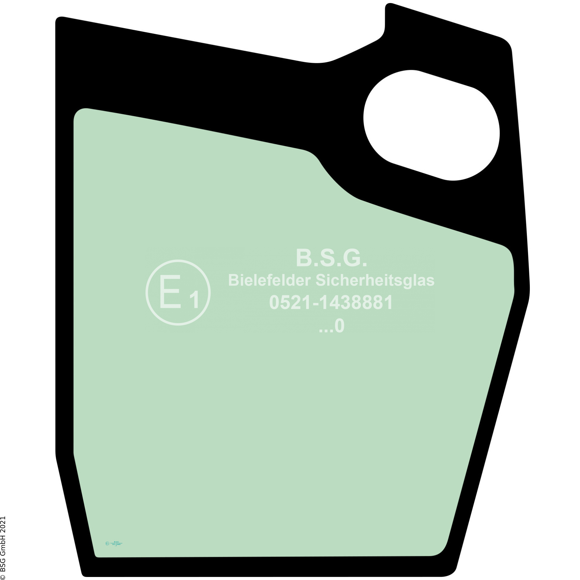 Türscheibe rechts unten (mit Eckabschnitt) Terex TC14, TC16, TC19, TC22, TC35, TC37 Serie 2